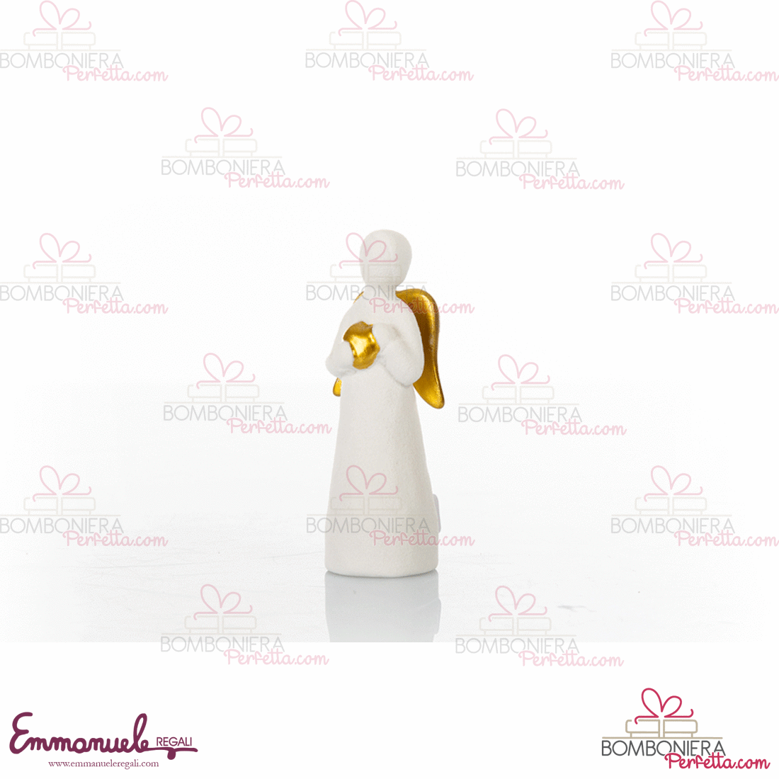 Bomboniera solidale della linea "Cuore D'Oro" collezione di Cuorematto propone una serie di statuine ed angeli in porcellana bisquit con dettagli decorati in oro.