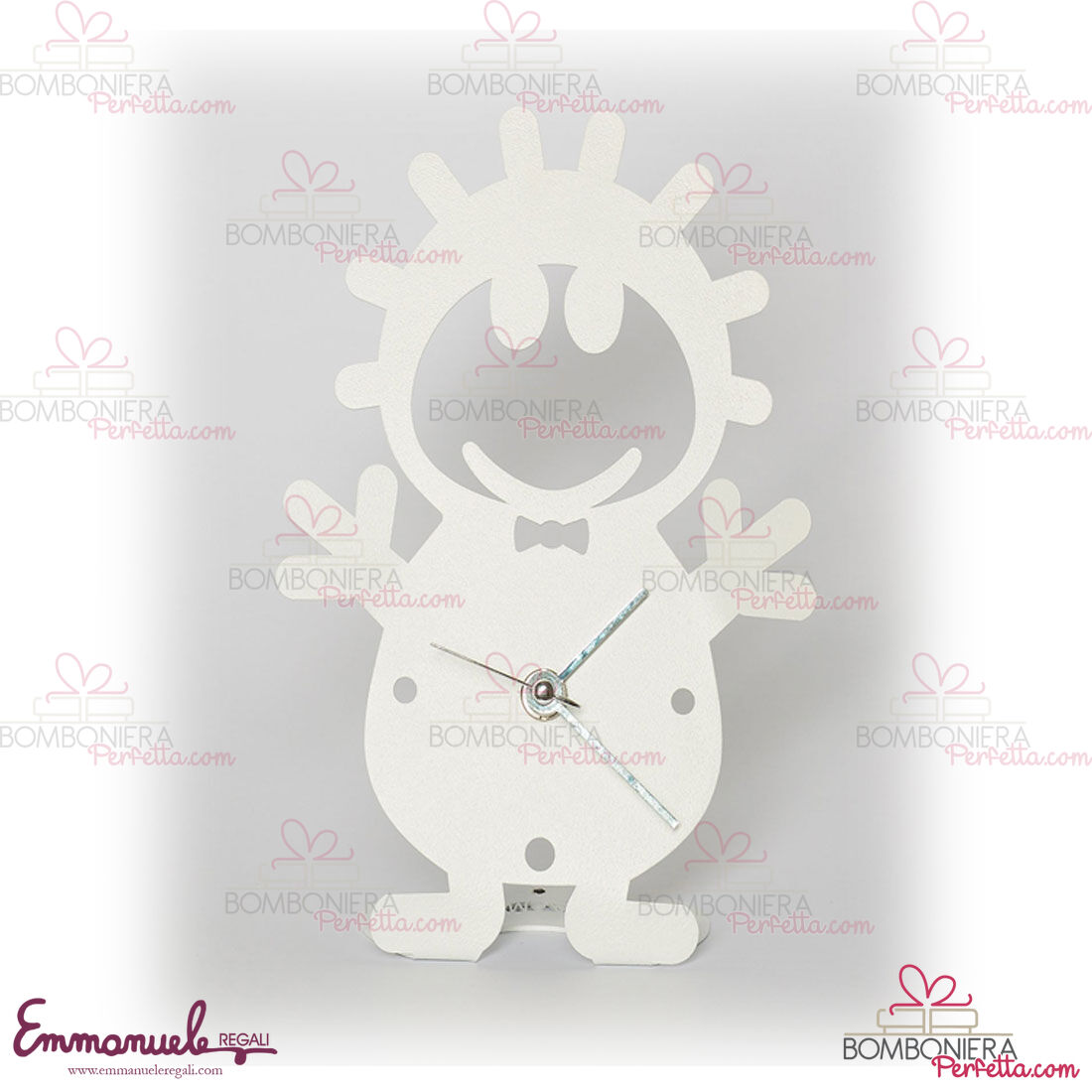 La bomboniera orologio Bibo è una bomboniera originale e un complemento funzionale su scrivanie e tavoli da lavoro. Un oggetto dal significato profondo e dalla spiccata funzionalità, ideale anche come complemento d’arredo.