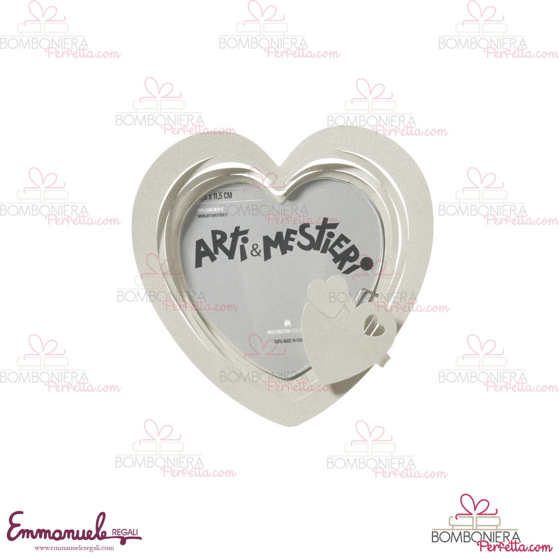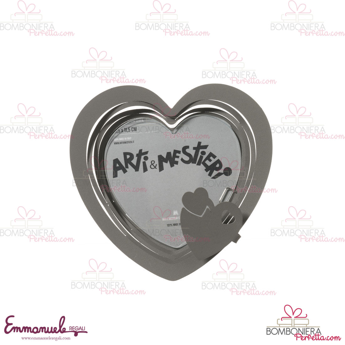 La bomboniera Portafoto Mon Coeur è una bomboniera originale e un complemento funzionale su scrivanie e tavoli da lavoro. Un oggetto dal significato profondo e dalla spiccata funzionalità, ideale anche come complemento d’arredo.
