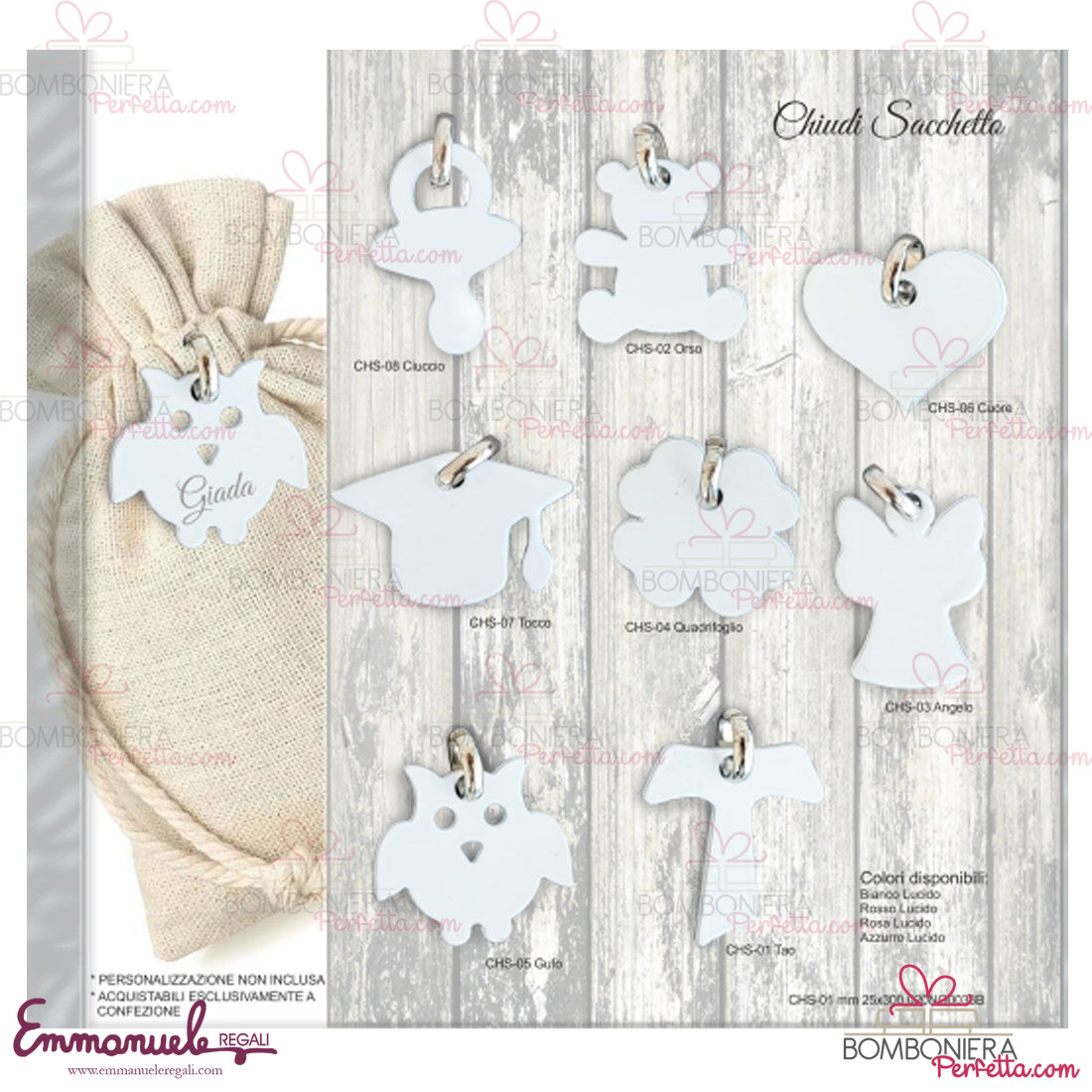 Con la nuova ed originale collezione Negò lancia questa nuova serie di particolari chiudi sacchetto con diversi decori come tao,angelo,orsetto,cuore e tanti altri simobili davvero originali in confezioni da 50pezzi. Una linea davvero particolare dai colori delicati ed unici per ricordare al meglio i vostri eventi.
