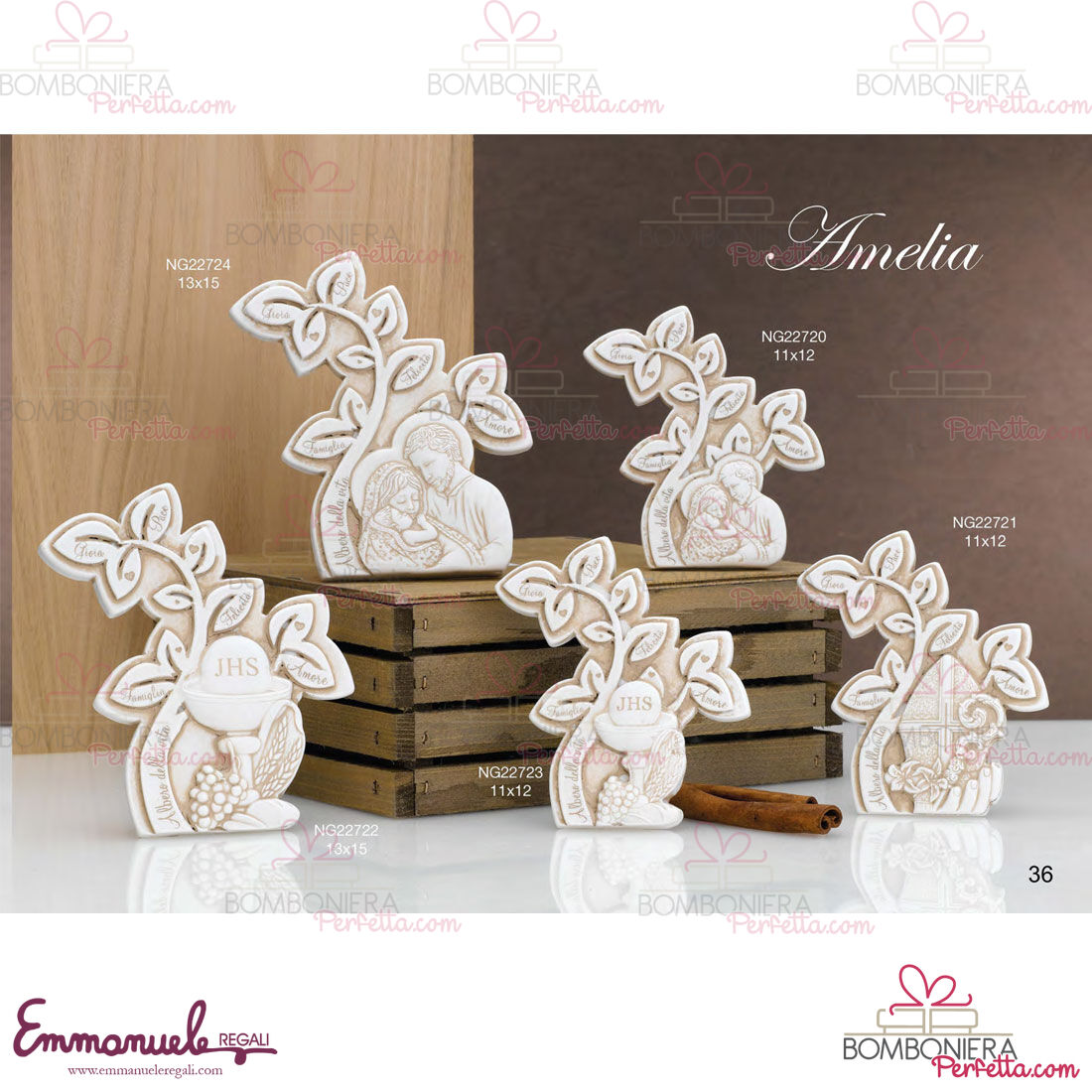 La linea Amelia di Dolcicose è una collezione di bomboniere in bassorilievo con soggetti sacri realizzate in polvere di marmo.