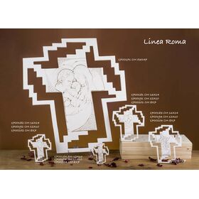 Crocifisso traforato con immagine sacra in polvere di marmo - Linea Roma