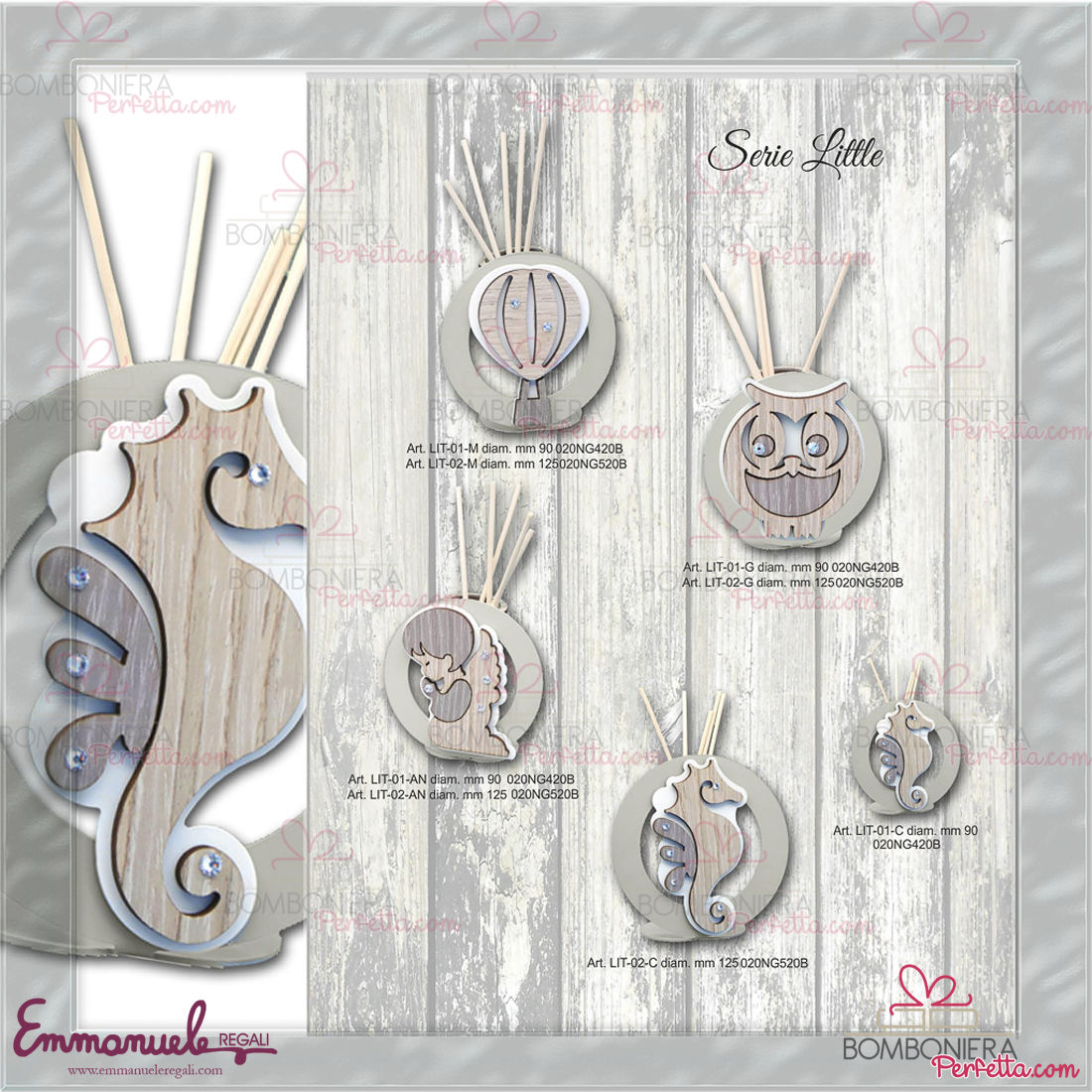 La serie "Little" collezione di Negò , è una linea di Bomboniere/Profumatori realizzati in metallo e legno arricchita con applicazione di strass. ll giorno in cui festeggiamo un’occasione speciale è un giorno che vogliamo ricordare per sempre.