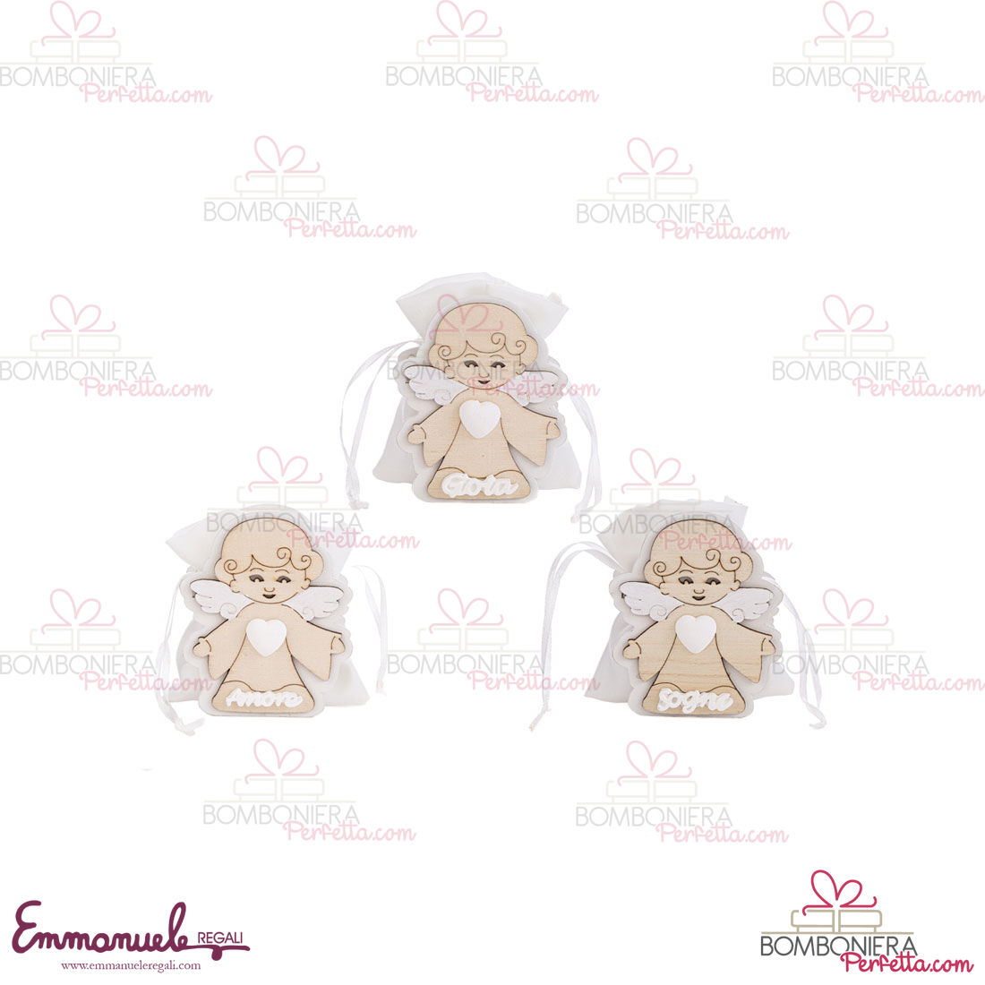 Il porta sacchetto Angelo con tre modelli differenti di Angeli è stato creato per la nuova collezione Le Stelle. Ideali come idea di Bomboniere o come articoli decorativi, perfetti per rendere il vostro evento elegante e raffinato.