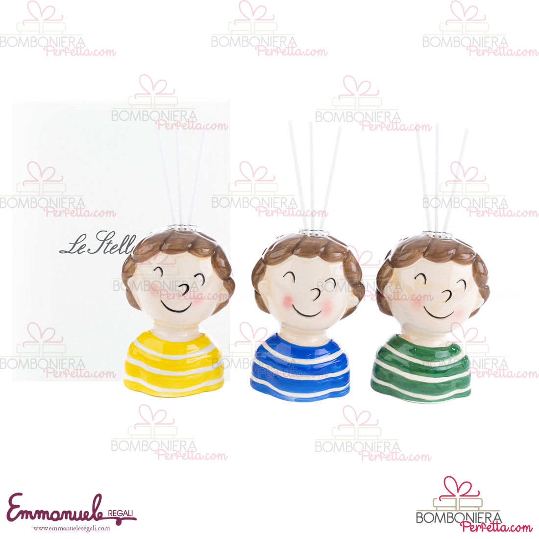 L'originale Profumatore Boy 3 colori assortiti è stata creata per la nuova collezione Le Stelle. Ideali come idea di Bomboniere o come articoli decorativi, perfetti per rendere la vostra casa o evento elegante e raffinato.