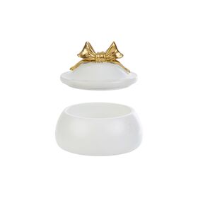 La scatola in resina con fiocco dorato è pensata come bomboniera ideale per matrimoni.