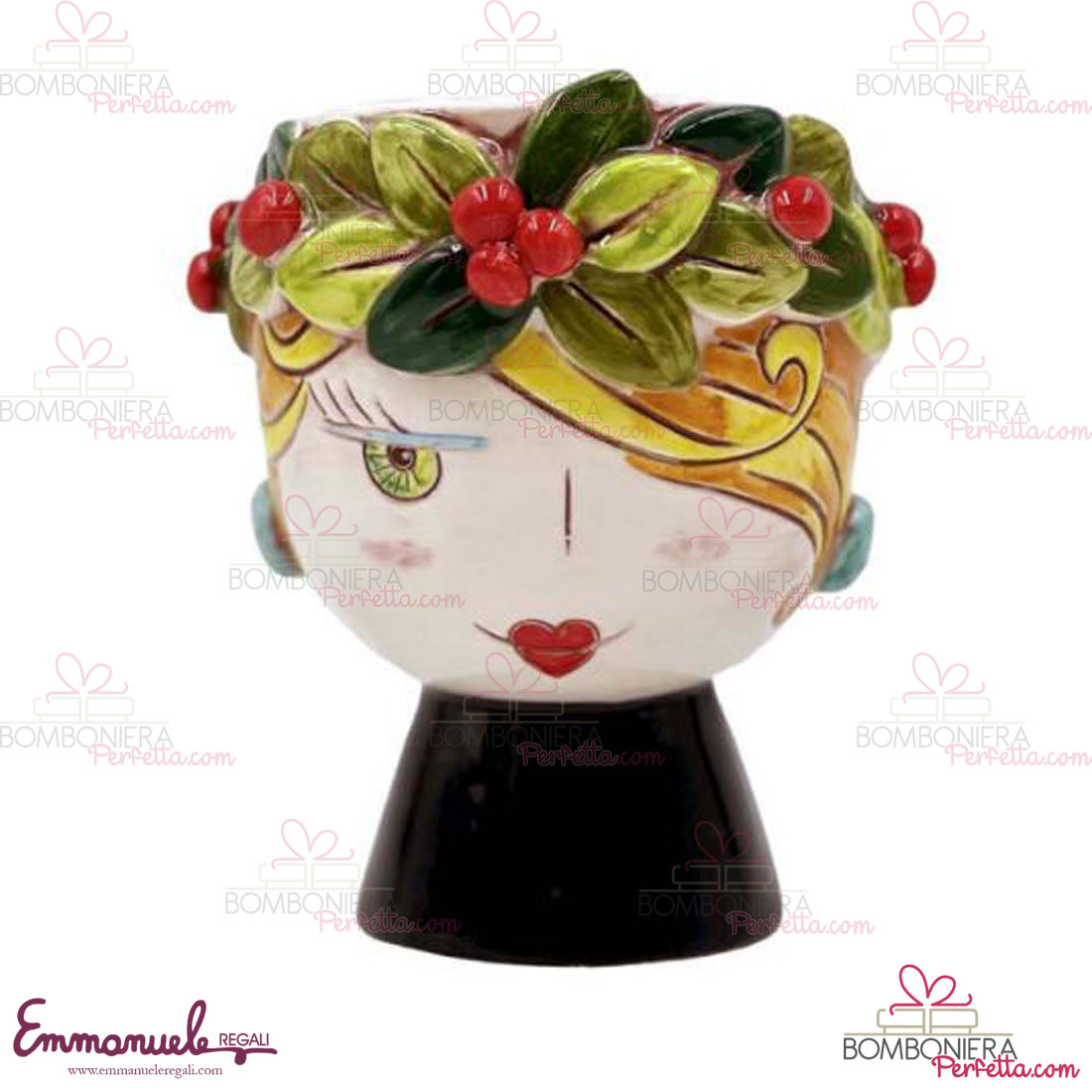 La portapianta con viso laureata come tutti gli altri articoli di "Le Ceramiche di Nonna Rosa" sono interamente realizzati a mano da maestri artigiani siciliani.