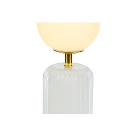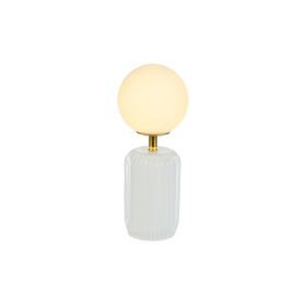 Presenta una forma cilindrica con diffusore sferico opalino e base lavorata, aggiungendo raffinatezza a qualsiasi ambiente.