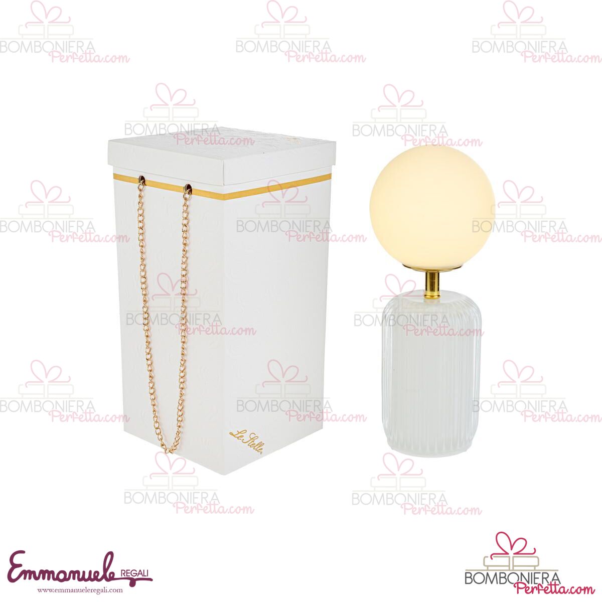 Lampada in vetro bianco, dal design moderno ed elegante, ideale come bomboniera per matrimonio.