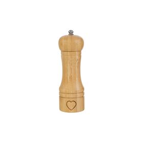 Il macinapepe in legno, con dimensioni compatte di 5 cm di diametro per 16 cm di altezza, si distingue per il suo design naturale e la finitura liscia.