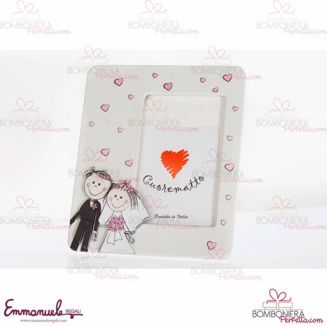 Bomboniera solidale "Portafoto Sposini (9x13)-Cuorematto" collezione di Cuorematto. Le Bomboniere di Cuorematto sono adatte per ricordare uno dei vostri momenti più importanti come: Compleanno, Anniversario, Comunione, Matrimonio, Laurea, Cresima, Nascita, Battesimo.