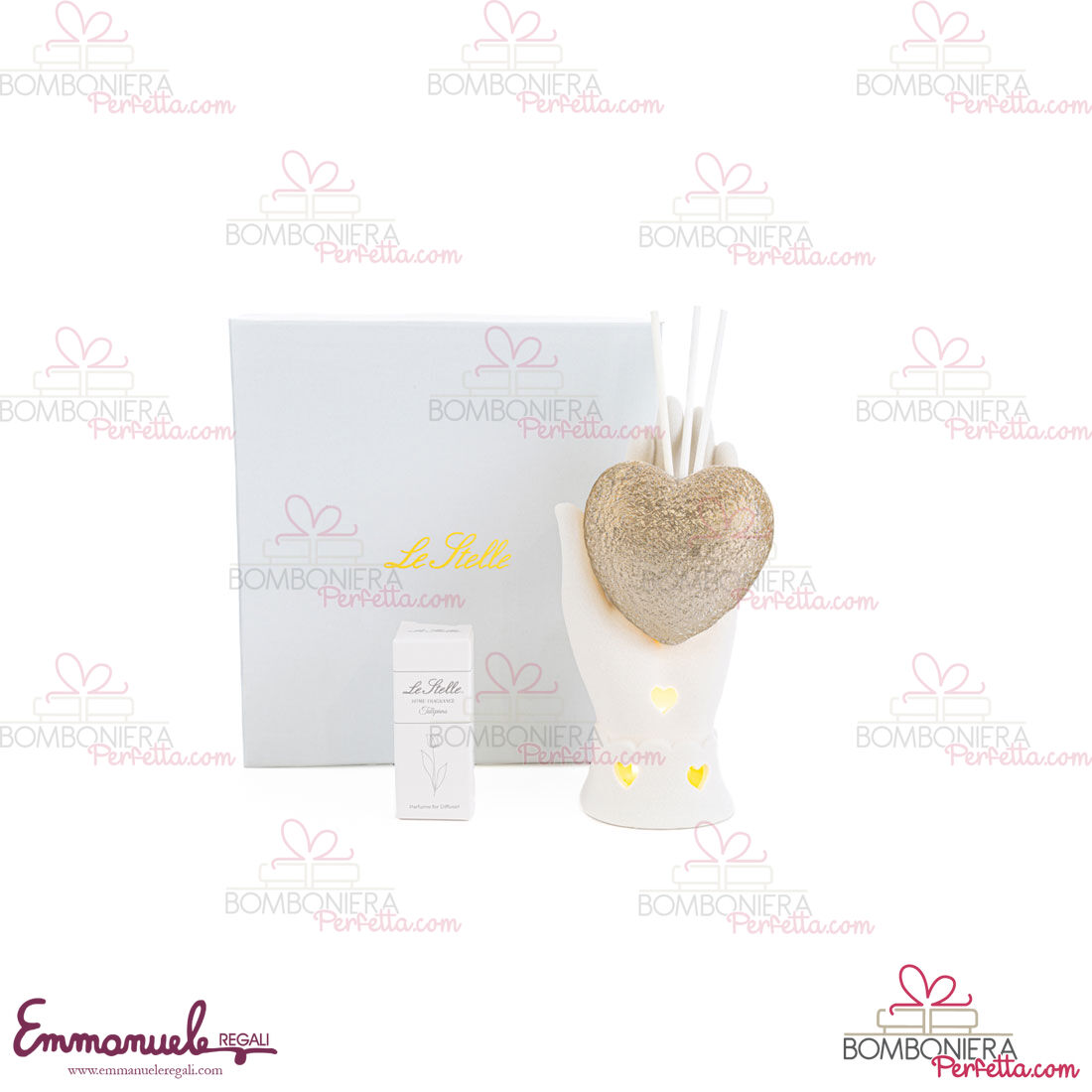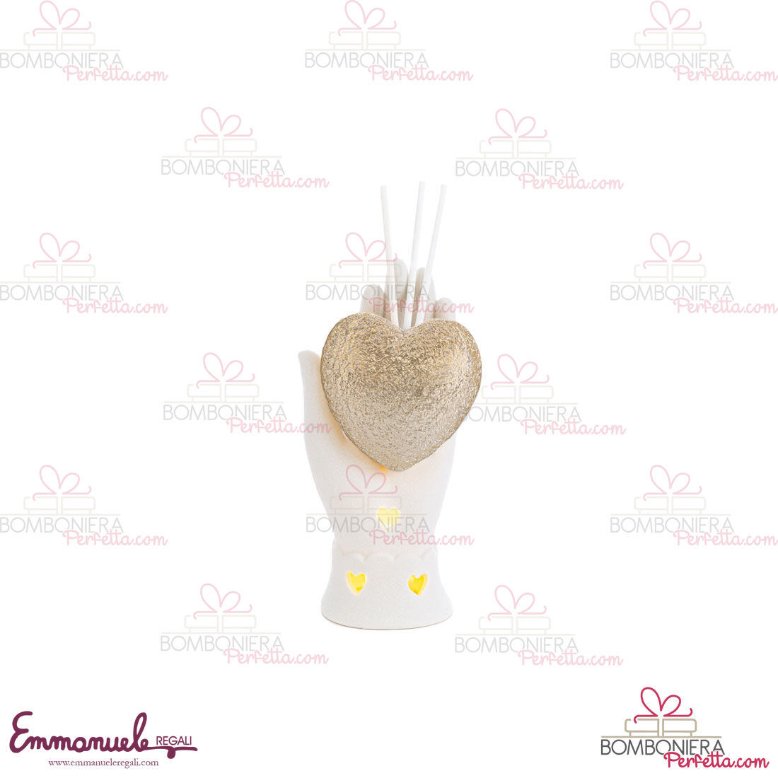 Il profumatore Cuore Mano Led in porcellana con decoro cuore oro è stato creato per la nuova collezione Le Stelle. Ideali come idea di Bomboniere o come articoli decorativi, perfetti per rendere la vostra casa o evento elegante e raffinato.