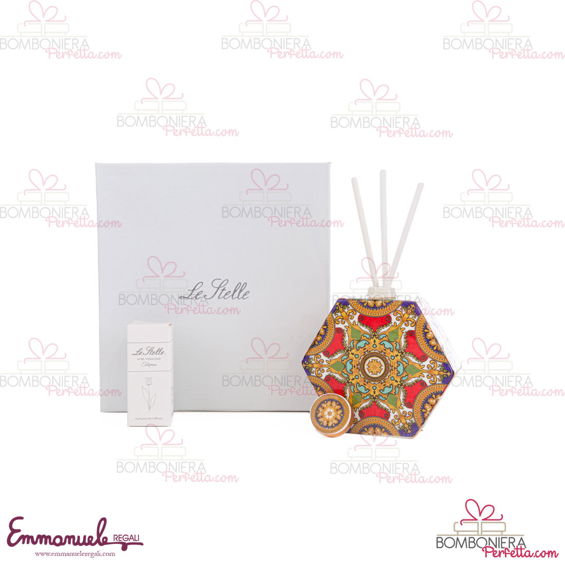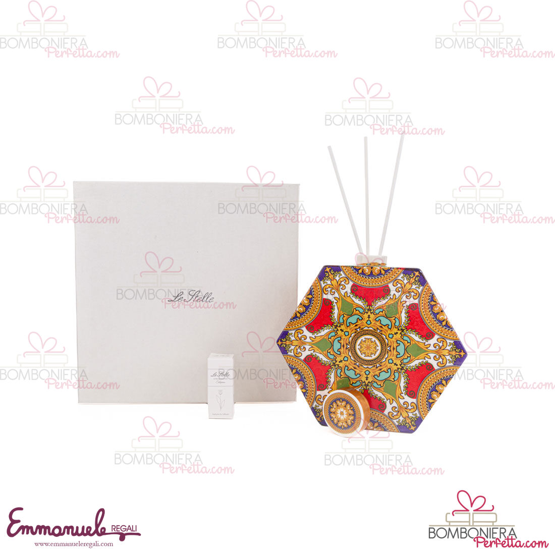 I profumatori esagonali della linea "Royal Carousel" sono stati creati per la nuova collezione Le Stelle. Ideali come idea di Bomboniere o come articoli decorativi, perfetti per rendere la vostra casa o evento elegante e raffinato.