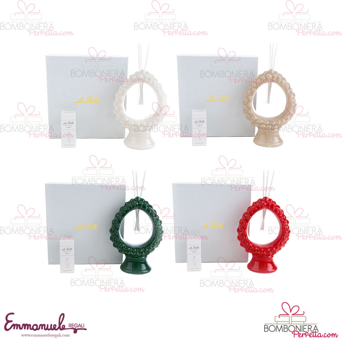 I profumatori Pigna porcellana sono stati creati in quattro colorazioni diverse in  bianco,rosso,beige e verde per la nuova collezione Le Stelle. Ideali come idea di Bomboniere o come articoli decorativi, perfetti per rendere la vostra casa o evento elegante e raffinato.