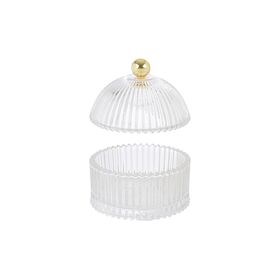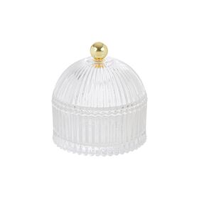 Questa elegante scatola in vetro dalle dimensioni compatte di 10,5x10xh.11 cm presenta linee arrotondate e raffinati dettagli lavorati, perfetti per dare un tocco decorativo alla tavola.
