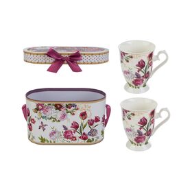 Il SET 2 MUG Bouquet di Charme in porcellana è composto da due eleganti tazze abbinate a un astuccio raffinato con decoro floreale. Ogni elemento presenta una lavorazione in porcellana resistente, ideale per degustare tè o caffè con stile.