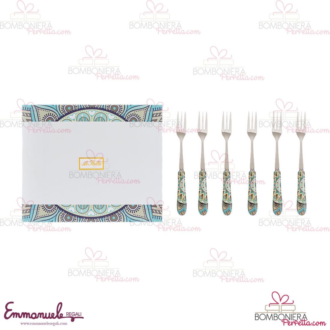 Il set 6 Forchettine della linea "Cashmere" è stato creato per la nuova collezione Le Stelle. Ideali come idea di Bomboniere o come articoli decorativi, perfetti per rendere la vostra casa o evento elegante e raffinato.