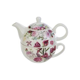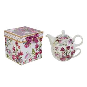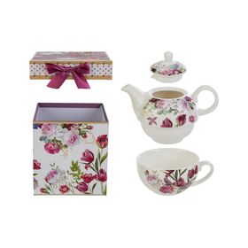 Questo set teiera in porcellana, decorato con eleganti motivi floreali, comprende anche un raffinato astuccio coordinato.