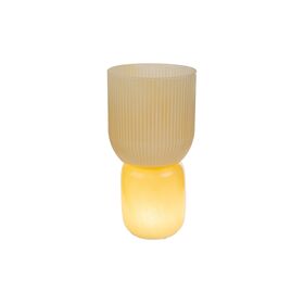 Il vaso vetro lampada beige, con diametro di 12 cm e altezza di 23 cm, è realizzato in vetro e presenta un elegante design moderno.