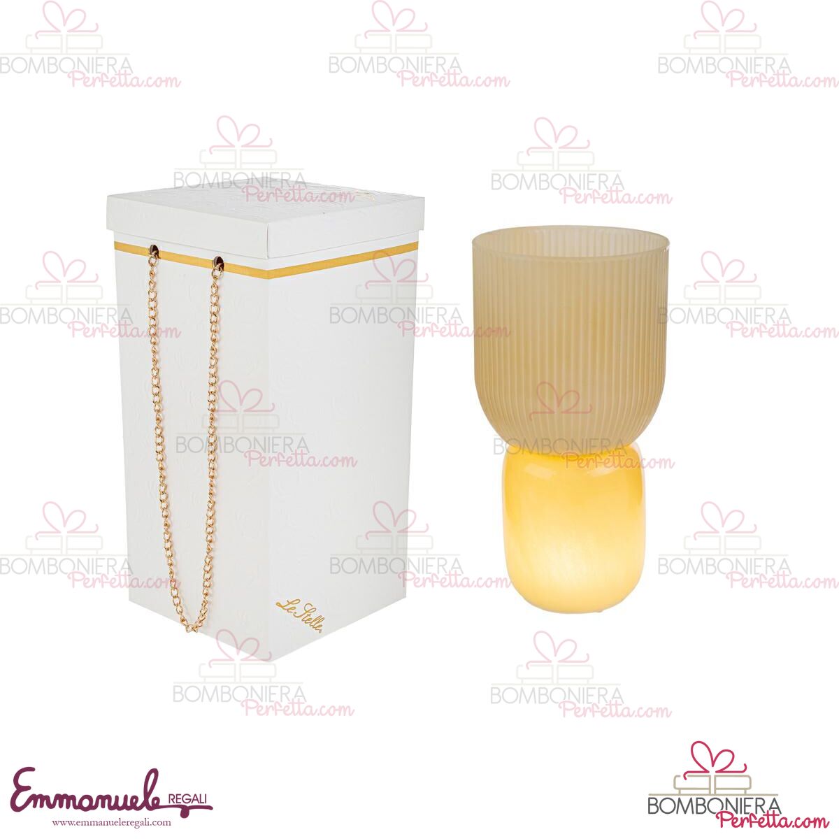 Questo articolo viene proposto all’interno di una confezione regalo con dettagli dorati, ideale come bomboniera per matrimonio.