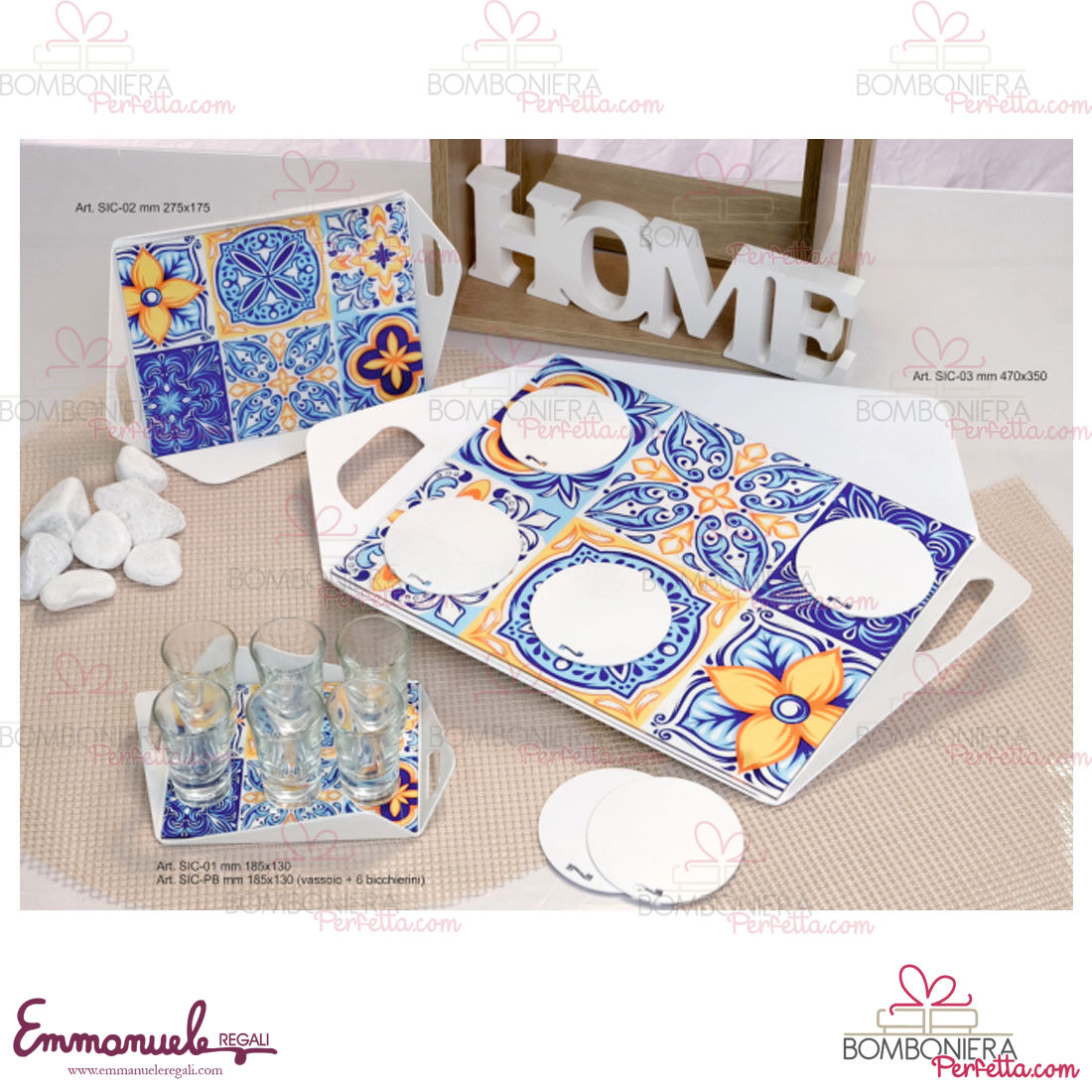 Vassoio piccolo con stampa Sicily + 6 bicchierini - Negò