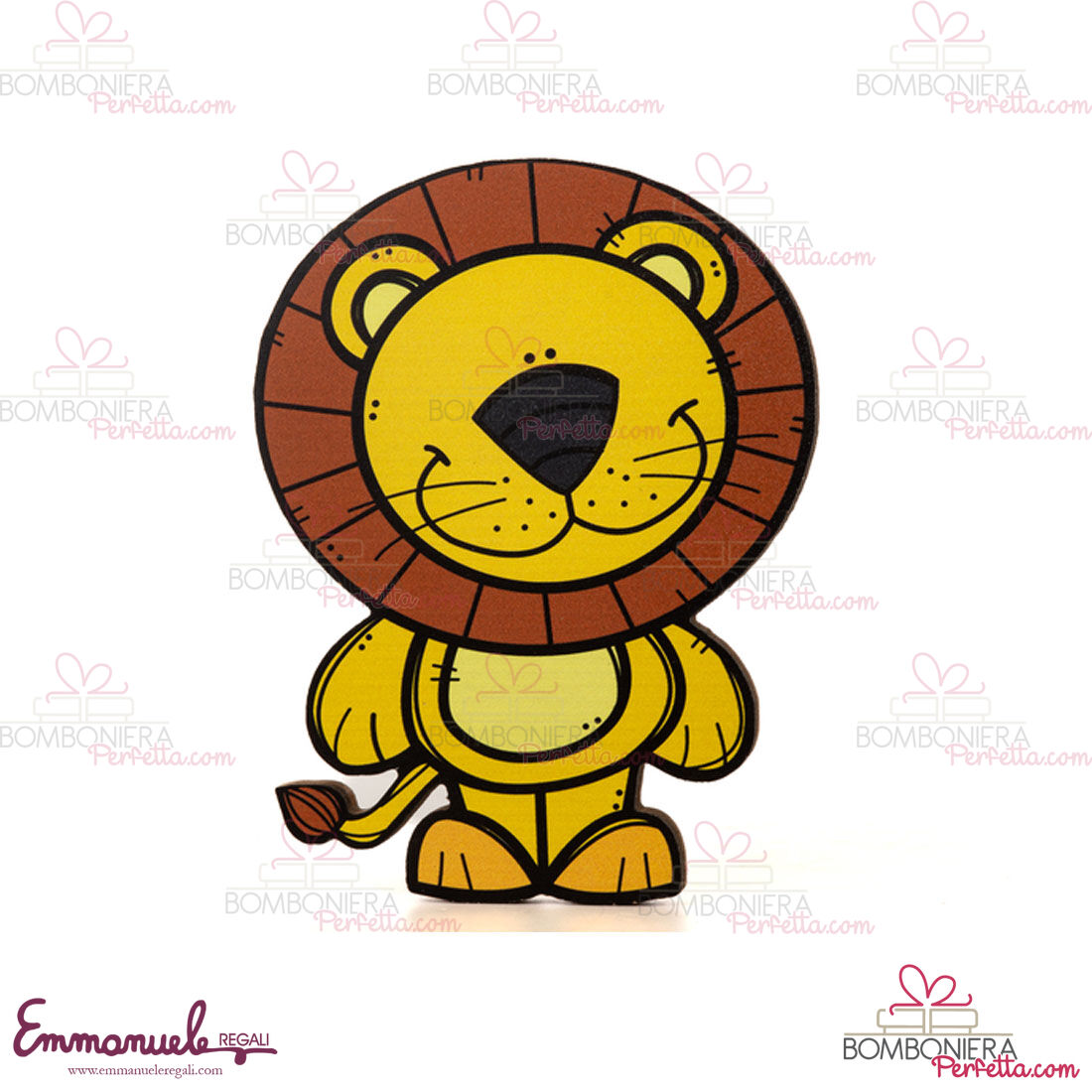 Bomboniera solidale "Decorazione da muro Leone - Cuorematto" collezione di Cuorematto. Le Bomboniere adatte per ricordare uno dei vostri momenti più importanti come: Compleanno, Anniversario, Comunione, Matrimonio, Laurea, Cresima, Nascita, Battesimo.