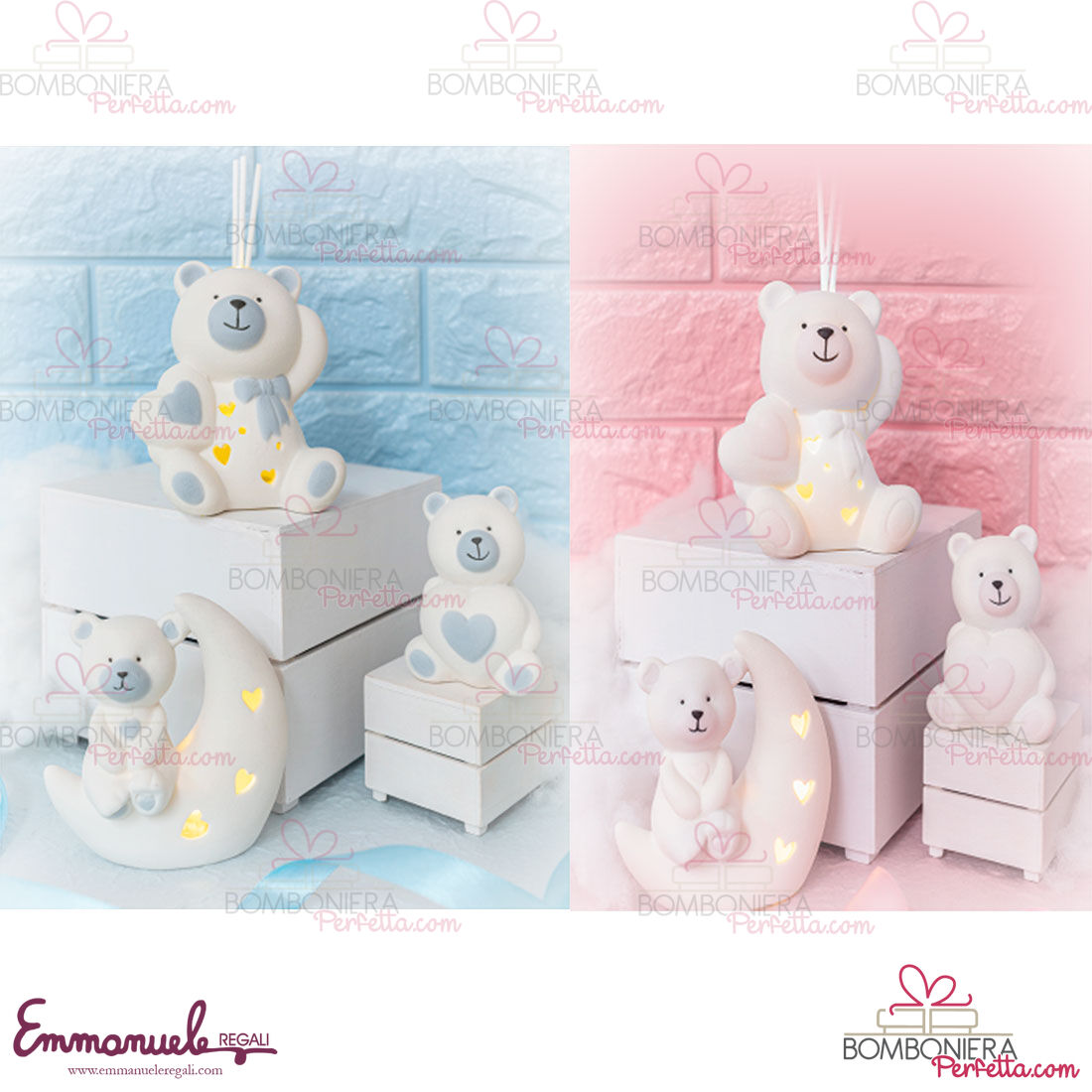 La Linea "Gli Orsetti", collezione Le Stelle , è una linea di eleganti orsetti in porcellana bianca con decori rosa e celeste adatti per ogni vostra occasione.