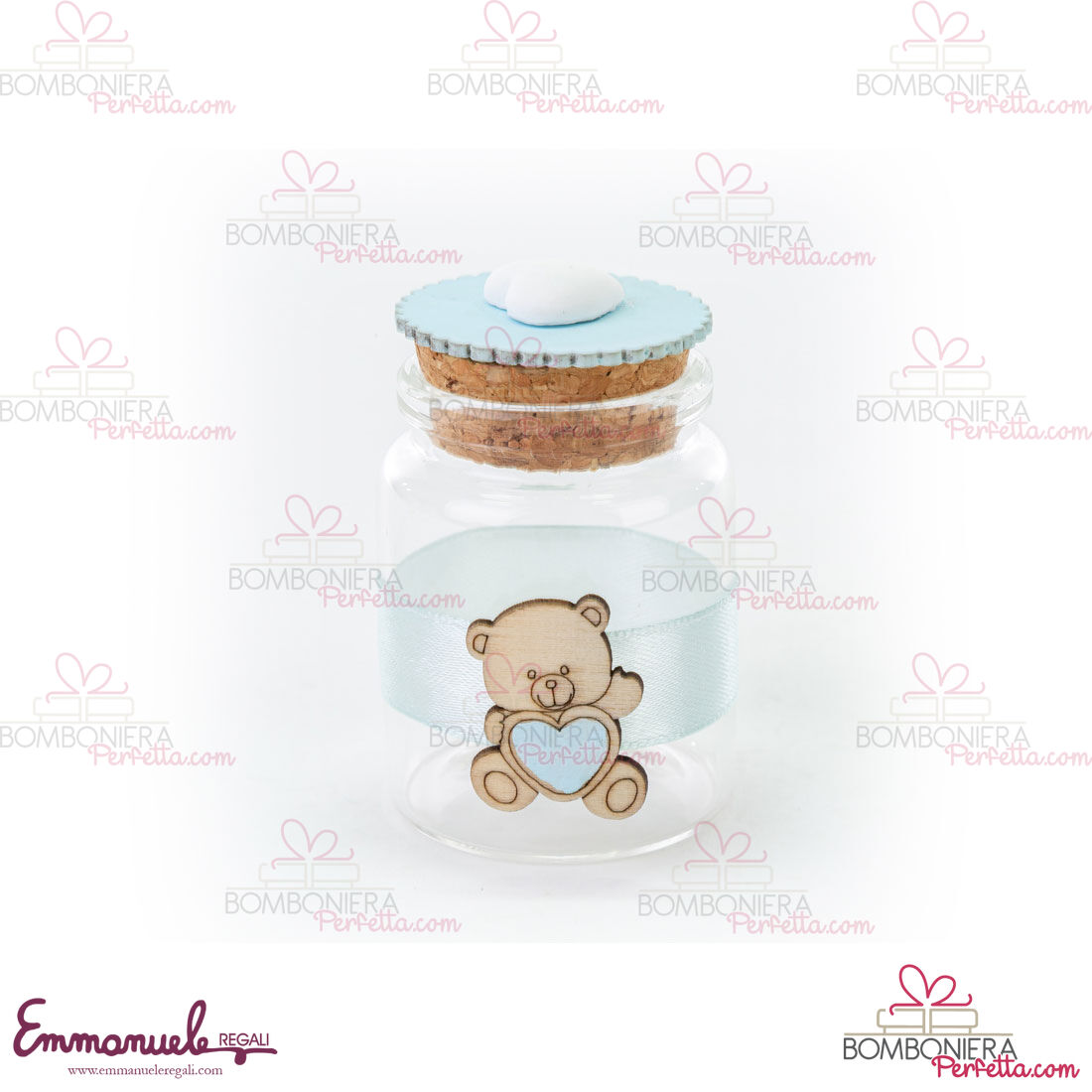- 54405 Barattolino vetro orsetto celeste (4.5xh.6.5cm) - € 1.50