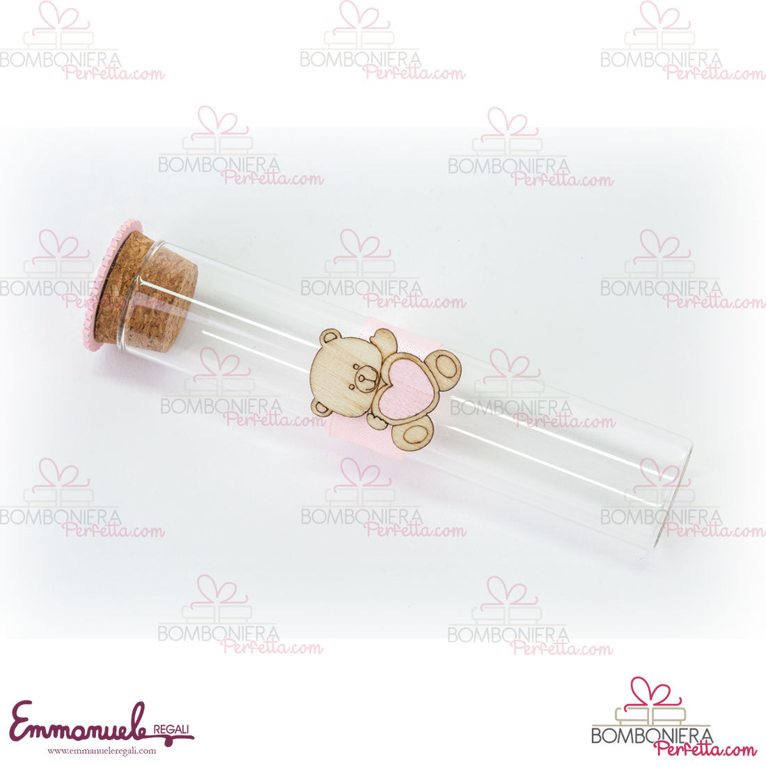 - 54406 Provetta vetro orsetto rosa (2.5xh.12.5 cm) - € 1.50