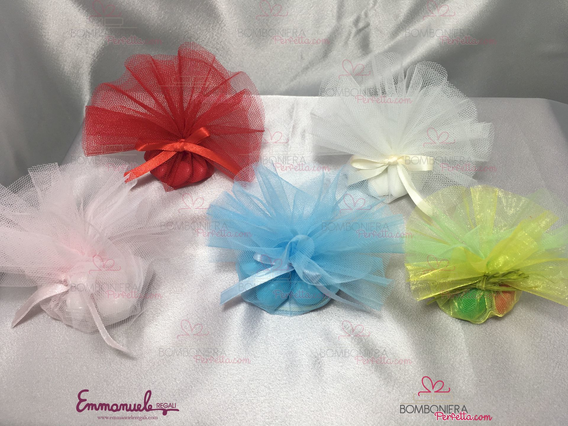 La Bomboniera è completa di confezione come da foto con doppio tulle a scelta e confetti.