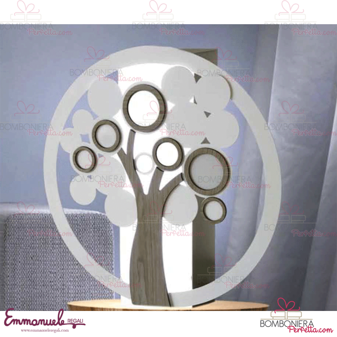 Realizzato in metallo con applicazione cerchio e albero life in legno.