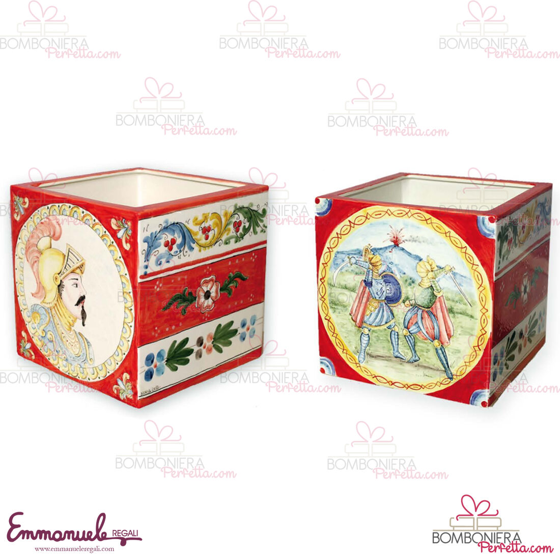 - CQU25-PP - Cachepot quadrato decoro in rosso con paladini cm. 25x25 - € 365.00