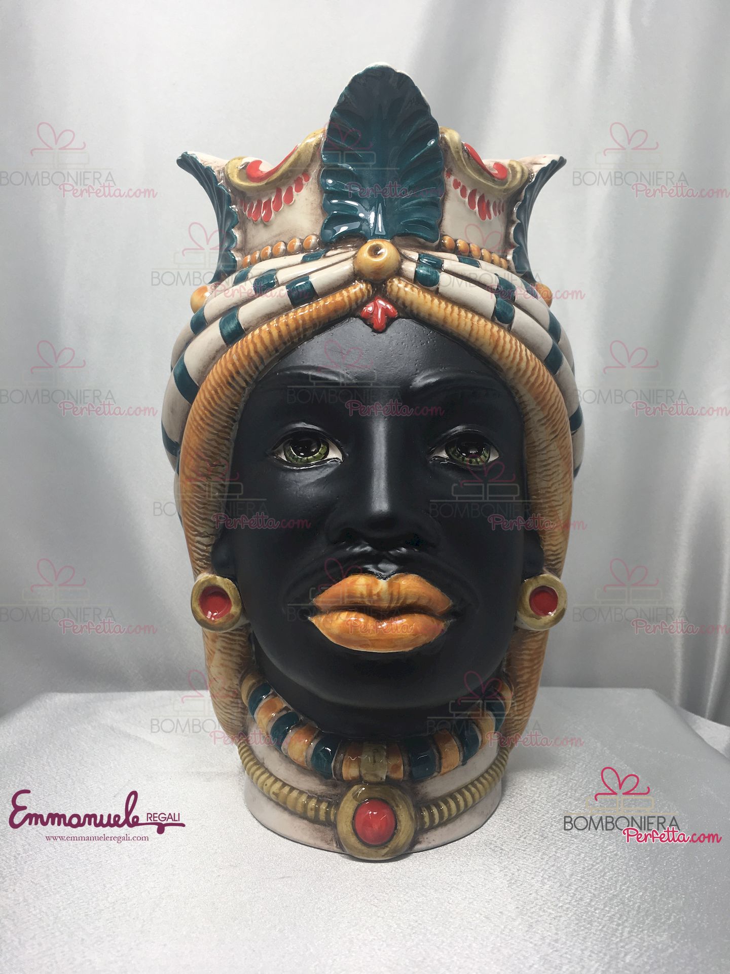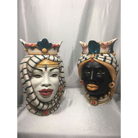Teste di moro in ceramica realizzata e decorata interamente a mano da maestri artigiani siciliani.