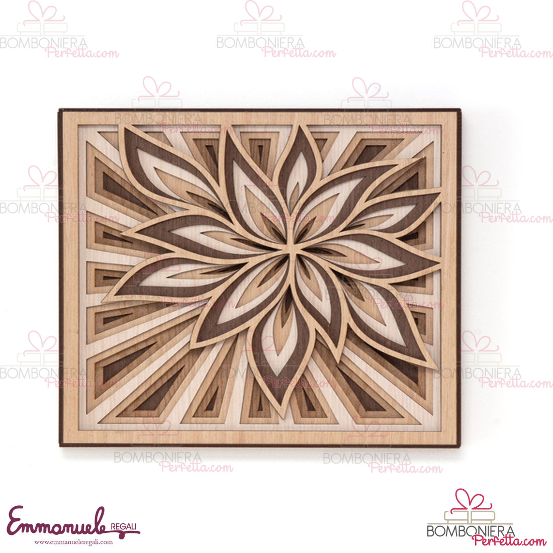 Il quadro "Fiore" sei strati fa parte della nuova linea di Amici di Cuorematto oggetti solidali chiamata "Amici Legno Strati" è adatto come complemento d'arredo per arredare la vostra casa o come articolo da regalo per ogni vostra ricorrenza.