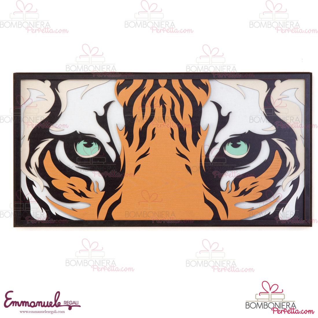 Il quadro "Occhi di tigre" cinque strati fa parte della nuova linea di Amici di Cuorematto oggetti solidali chiamata "Amici Legno Strati" è adatto come complemento d'arredo per arredare la vostra casa o come articolo da regalo per ogni vostra ricorrenza.