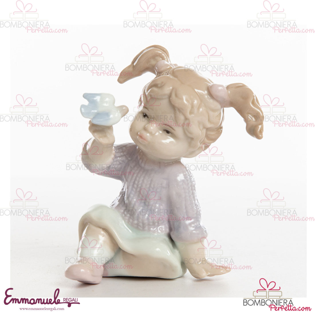 Morena Design inserisce nella sua collezione bimba seduta con uccellino in porcellana comprese di scatola con logo Morena design ideale per ogni vostra occasione.