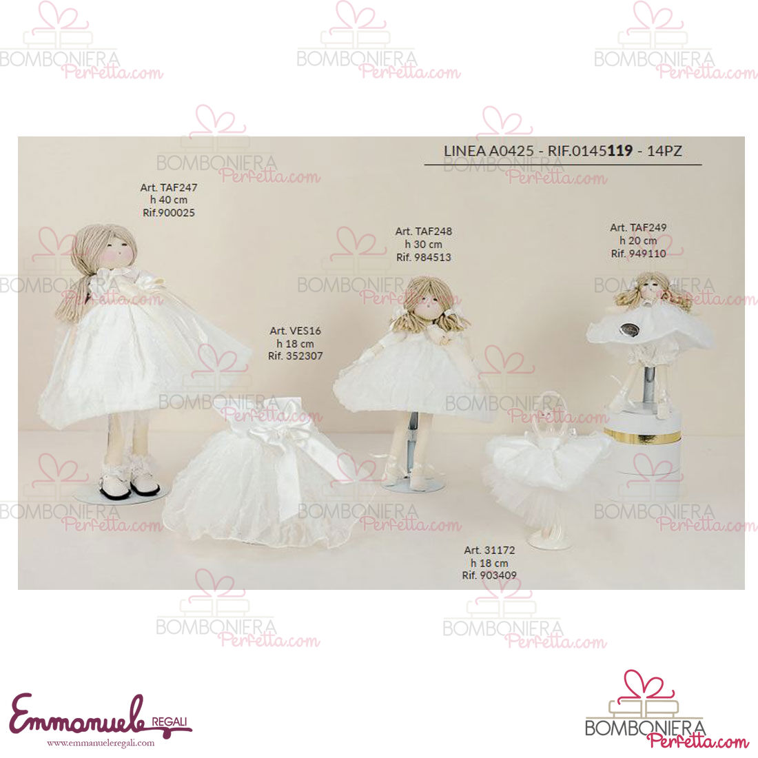 La linea A0425 de L'Infinito1972 è una collezione davvero originale con dolcissime bamboline e ballerine con fiocchi e tullè delicati adatte per i vostri eventi.