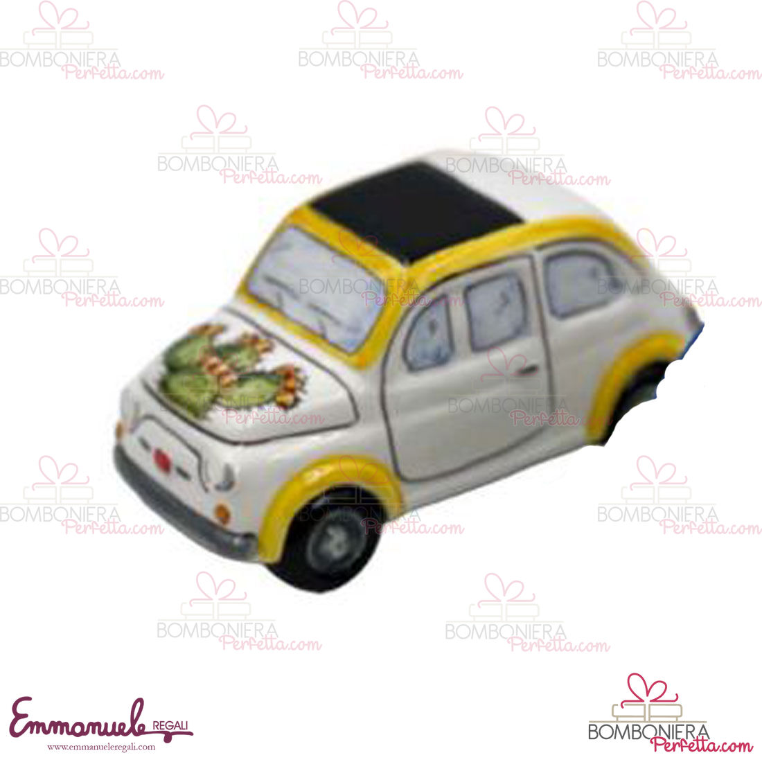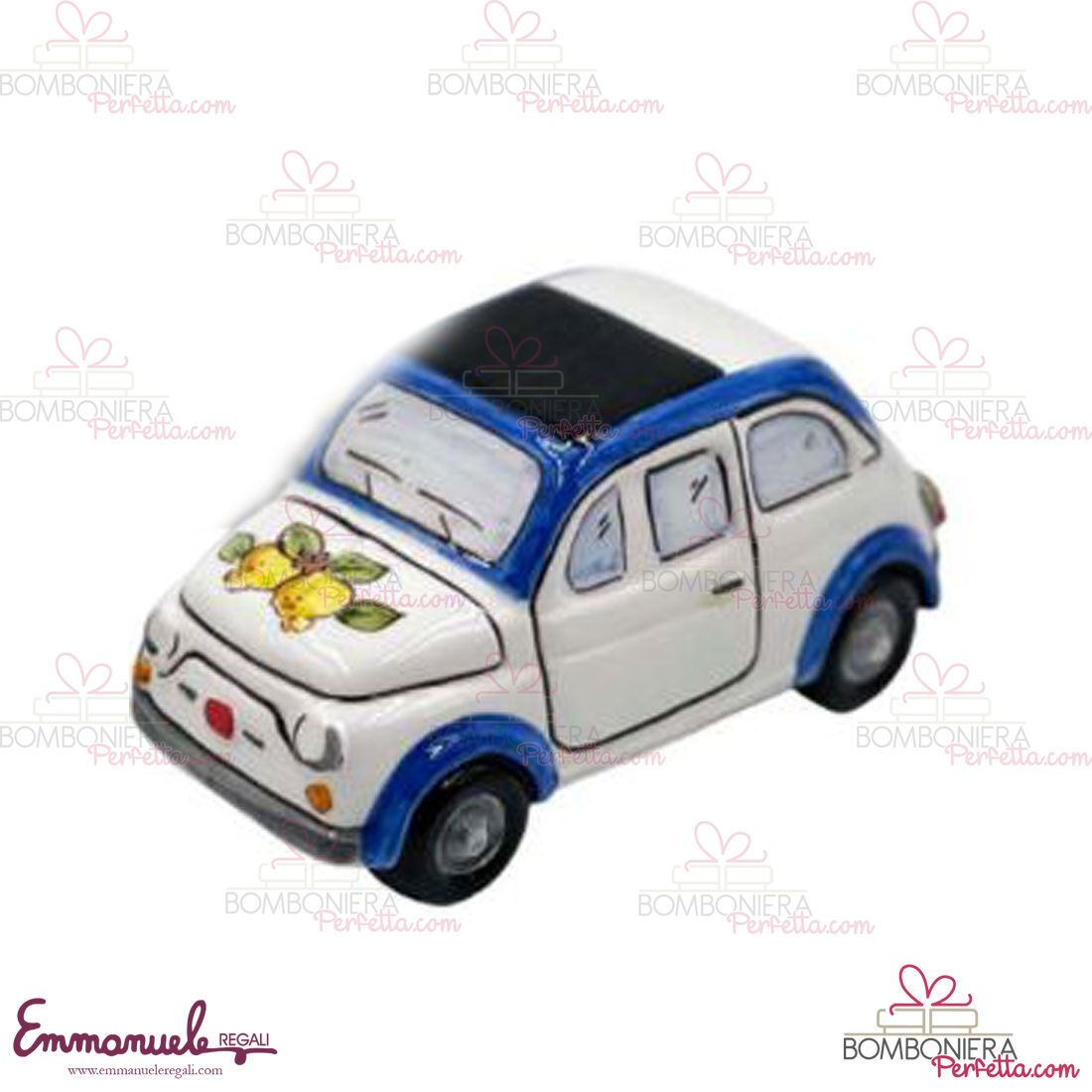 La cinquecento con fruttini come tutti gli altri articoli di "Le Ceramiche di Nonna Rosa" sono interamente realizzati a mano da maestri artigiani siciliani.