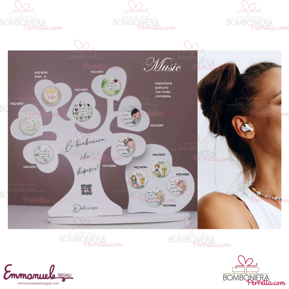 La linea Music di Dolcicose è una collezione davvero unica e moderna con delle originali Cuffie bluetooth. Oggetto usato a tutte le età, di prima qualità con stampe per ogni cerimonia riportando delle belle frasi. Le cuffiette wi fi hanno la loro scatola con la sede per l'oggetto e per i confetti e con cavetto usb sul fondo della scatola.