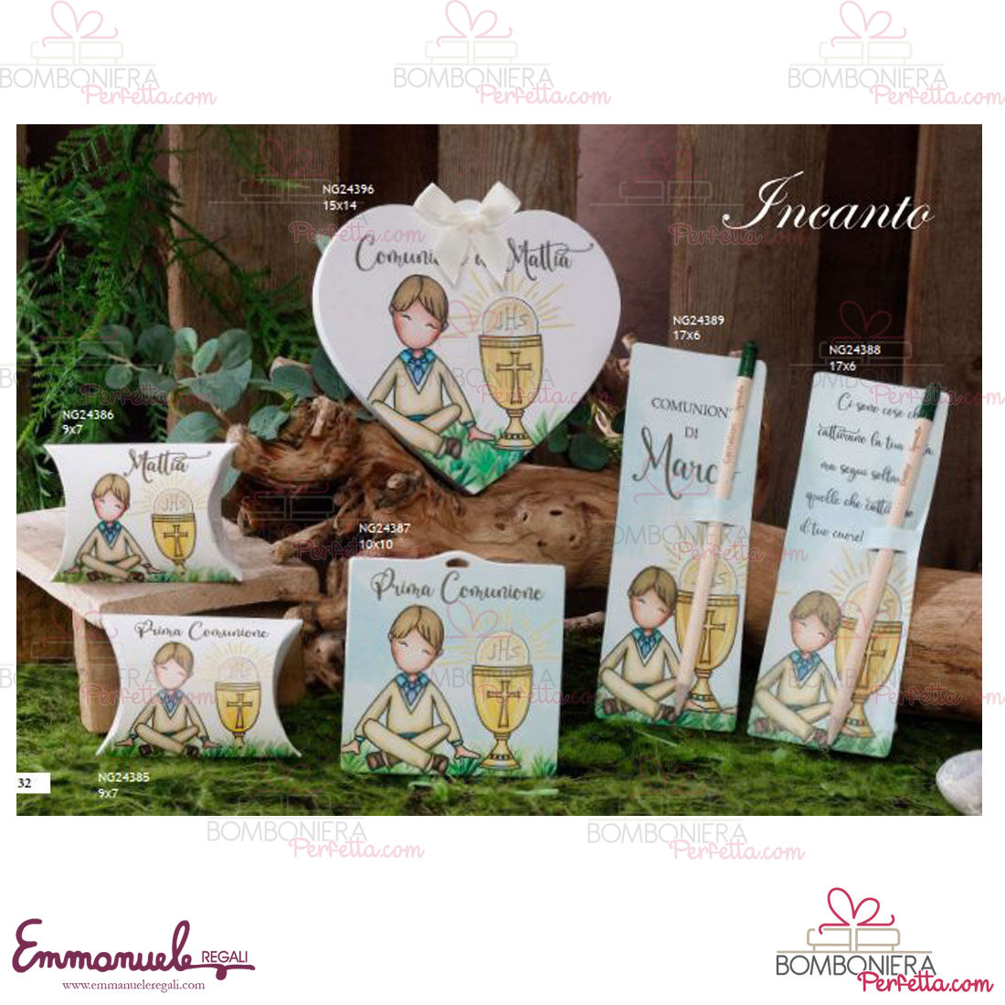 La linea Incanto comunione bimbo di Dolcicose è una collezione davvero originale con lampade, diffusori,salvadanai, orologi,portaconfetti,mattonella, matite piantabili,portachiavi , vangelo e bijoux con interno personalizzato decorato con grafiche comunione bimbo. La linea è realizzata in polvere di marmo di Carrara extrabianco e le stampe sono realizzate con tecnologie UV con risoluzione eccezionale con rilievo al tatto molto resistente alla luce.