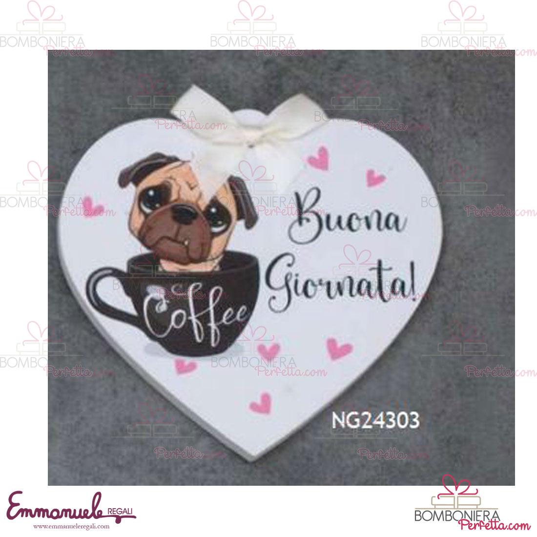 Cuore bianco Fiocco cane tazza - Dolcicose