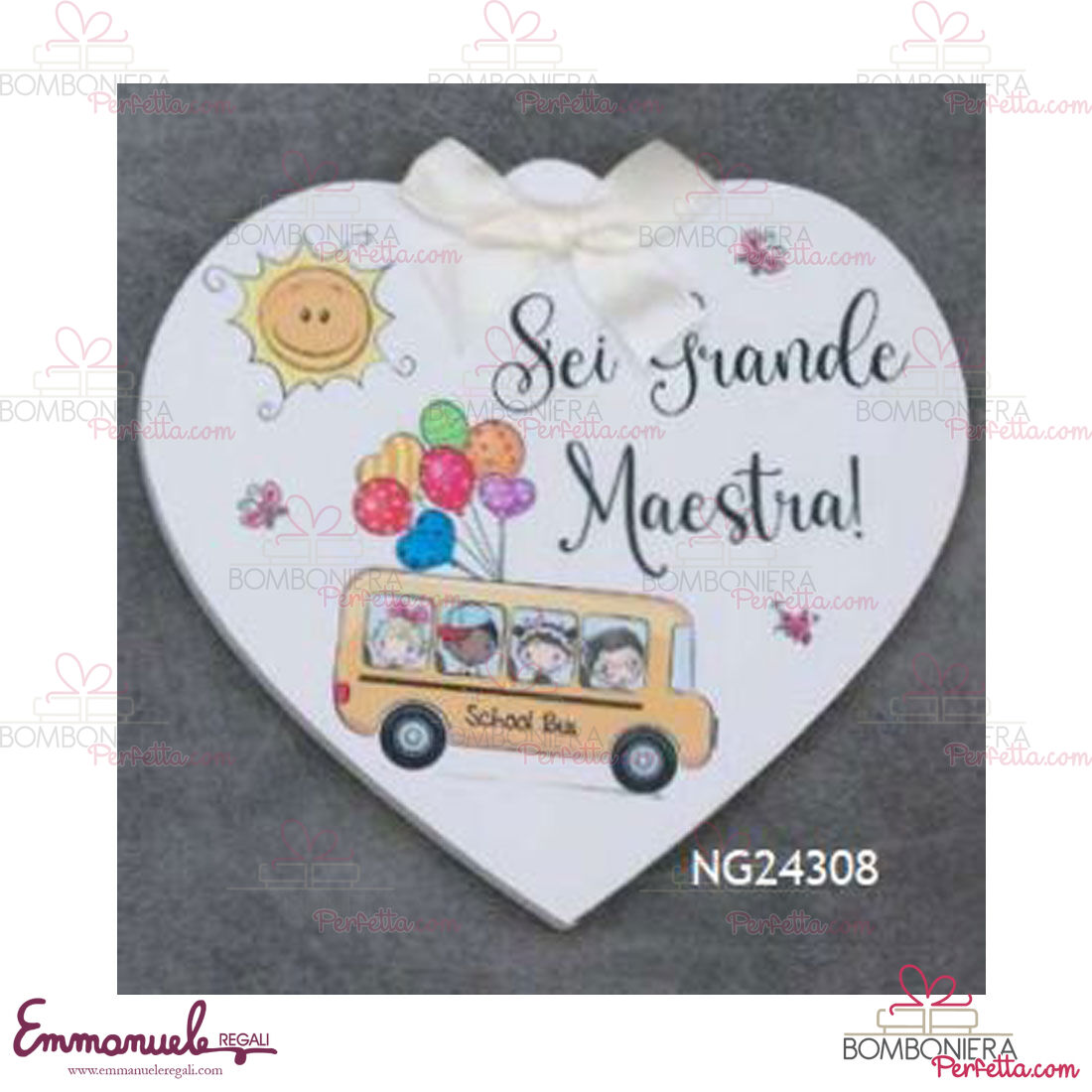 Cuore bianco Fiocco maestra bus - Dolcicose