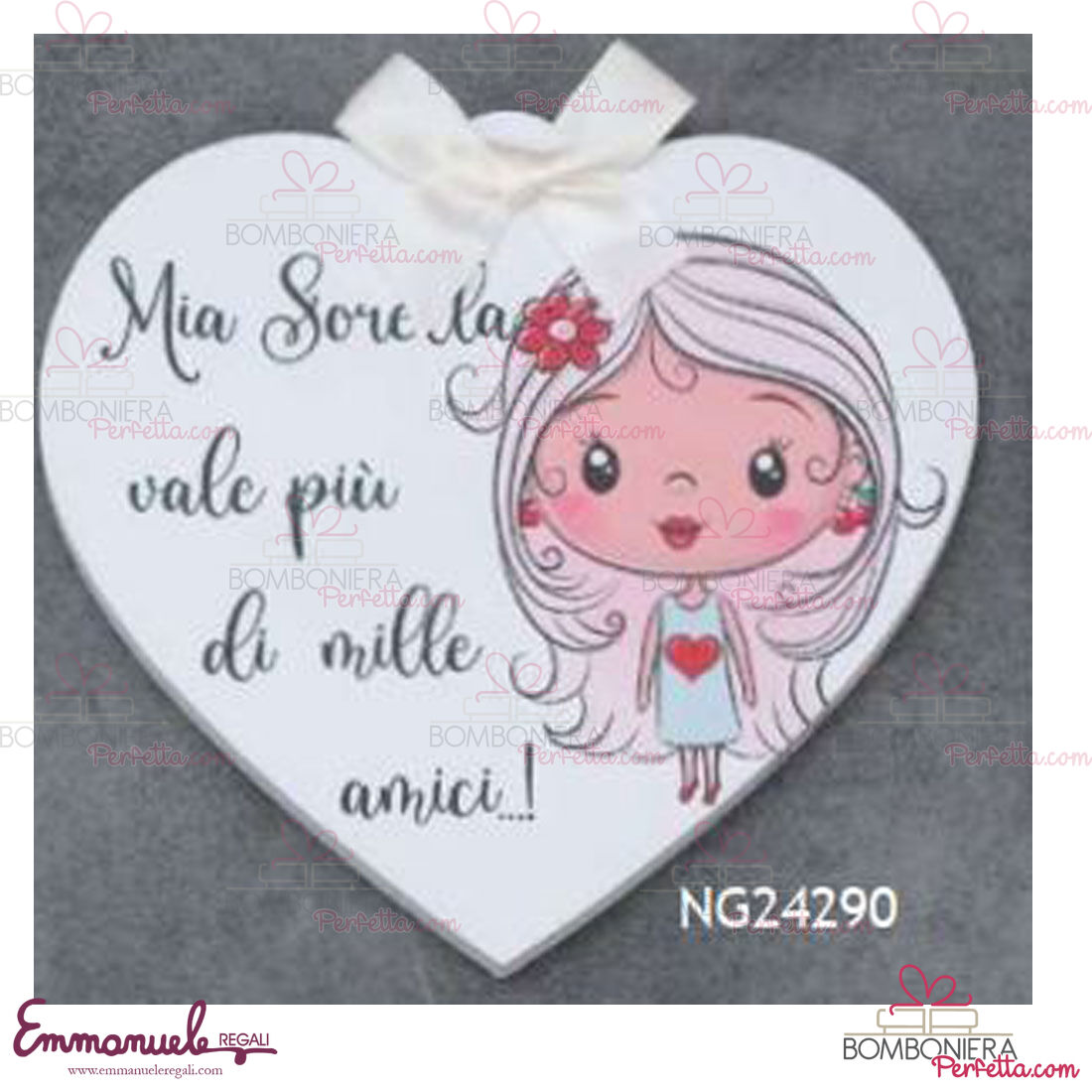 Cuore bianco Fiocco Sorella - Dolcicose