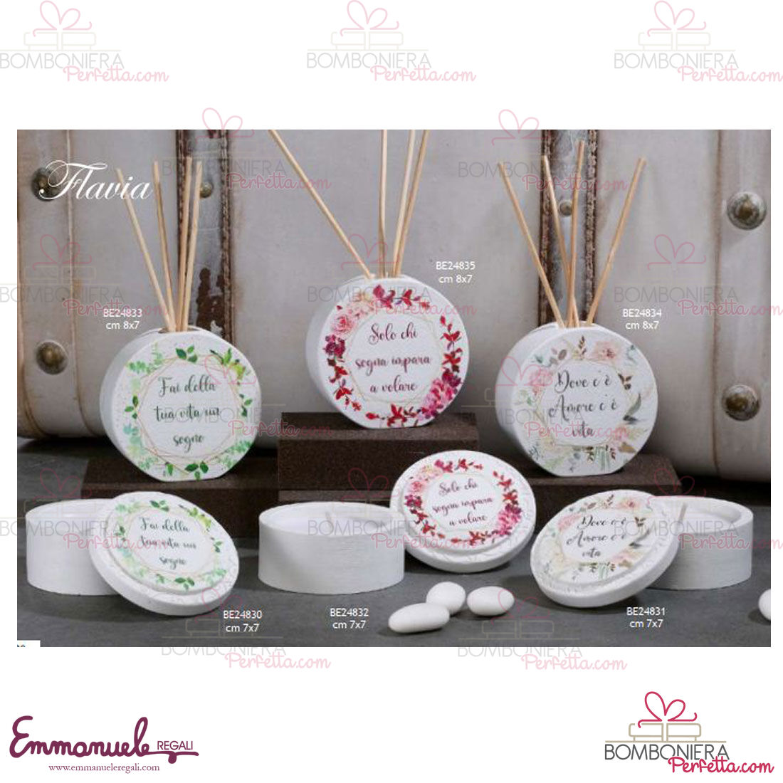 La linea Flavia di Dolcicose è una collezione davvero originale con particolari candele in scatola floreali e diffusori in polvere di marmo.