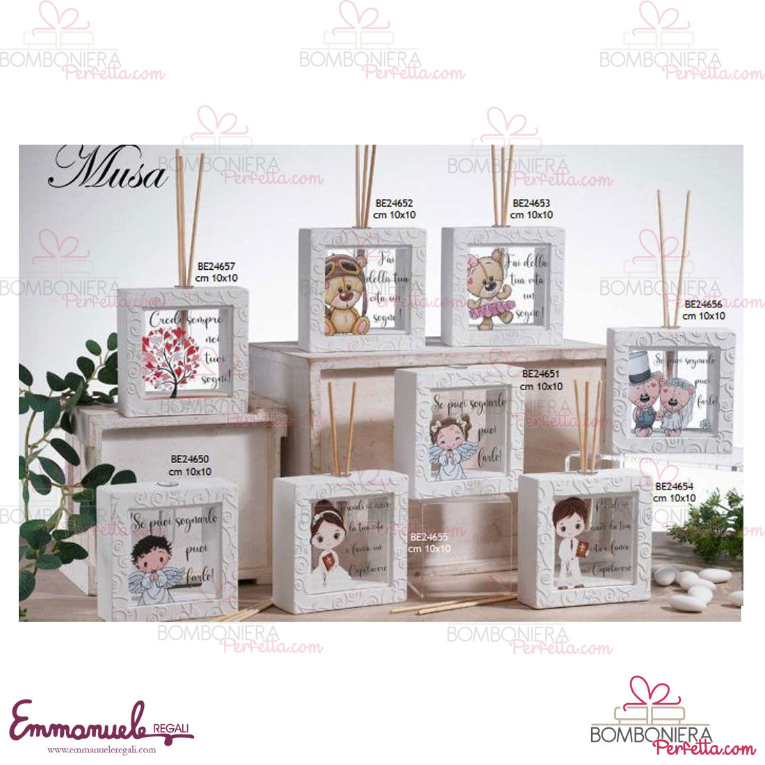 La linea Musa di Dolcicose è una collezione davvero originale con dei bellissimi diffusori quadrati in plexi trasparente e grafiche davvero particolari per i vostri vari eventi.