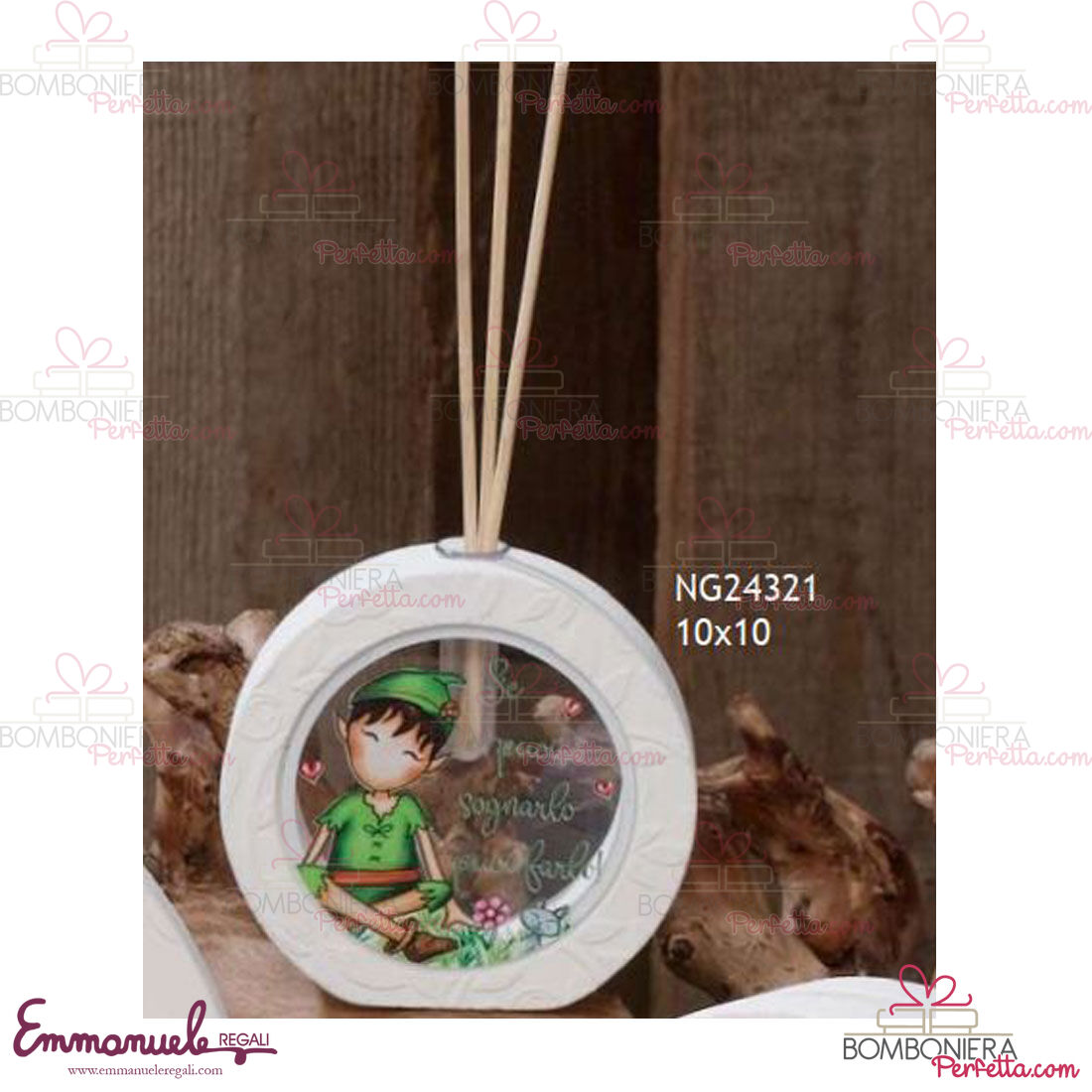 La linea Favola "Folletto" di Dolcicose è una collezione davvero originale con lampade, diffusori,salvadanai, orologi,portaconfetti,mattonella, matite piantabili,portachiavi e bijoux con interno personalizzato decorato con folletto. La linea è realizzata in polvere di marmo di Carrara extrabianco e le stampe sono realizzate con tecnologie UV con risoluzione eccezionale con rilievo al tatto molto resistente alla luce.