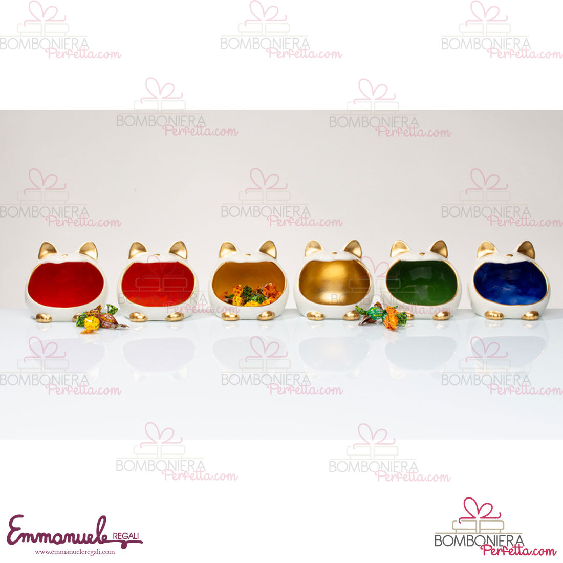 Il gattomatto portatutto 6 modelli assortiti sono incluse caramelle al miele (50gr) della collezione Cuorematto, è un'idea di bomboniera e articolo decorativo, perfetto per rendere i vostri eventi unici.