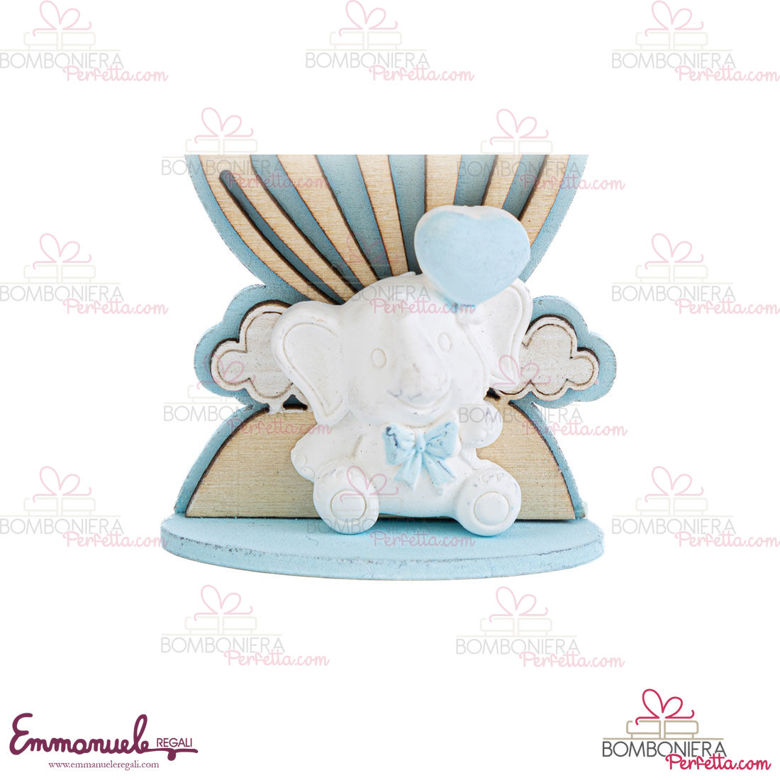 La Mongolfiera in Legno Elefantino celeste è stato creato per la nuova collezione Le Stelle. Ideali come idea di Bomboniere o come articoli decorativi, perfetti per rendere il vostro evento elegante e raffinato.