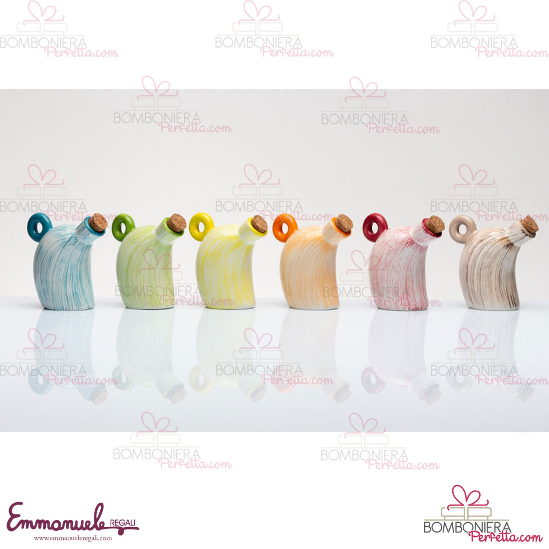 L'Oliera  6 modelli assortiti dipinto a mano con astuccio e con olio aromatizzato (50gr) della collezione Amici di Cuorematto, è un'idea di bomboniera e  articolo decorativo,  perfetto per rendere i vostri eventi unici.