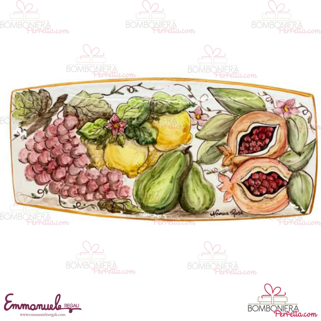 Il piatto rettangolare con fruttini disponibile in diverse misure come tutti gli altri articoli di "Le Ceramiche di Nonna Rosa" sono interamente realizzati a mano da maestri artigiani siciliani.